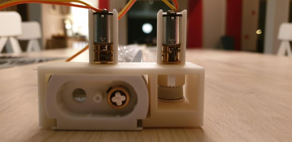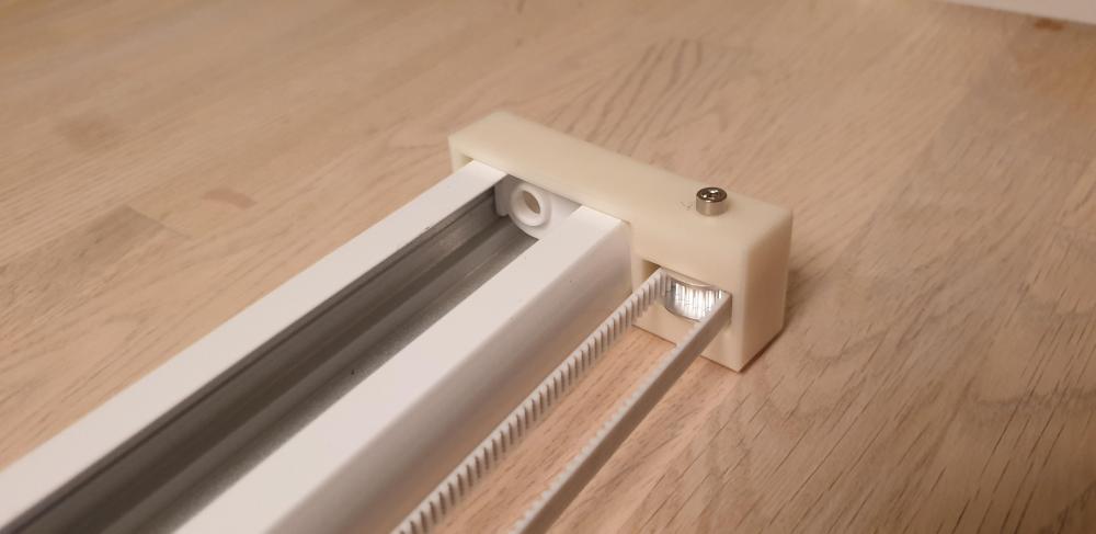 Klart jeg skal dele med dere, jeg elsker jo open source Tenkte bare at jeg skulle få alt på plass først og teste i prod. Det som gjenstår er stort sett å lodde sammen elsktronikken og prøve det i praksis. Festet med motorene skal jobbes litt mer med slik at den kan inneholde elektronikken. Ellers så ser jeg at festet til beltet kanskje må endres litt slik at det ikke vrir seg og det kan se ut som at festet som ikke har motorer på seg kanskje må justeres litt etter at det ble belastning på det fra stramming av beltet.