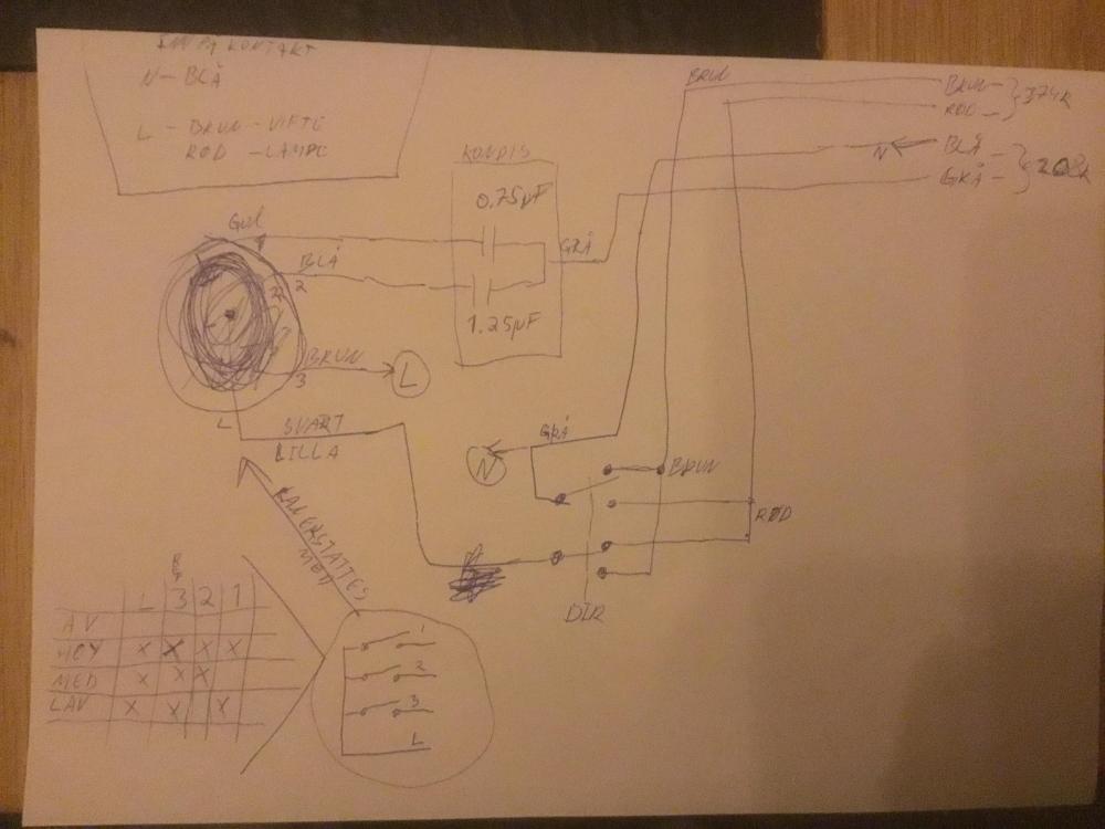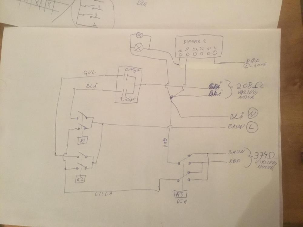 Tittel oppdatert da dette ble en byggetråd.. Her må det nøstes, tegnes skjema og fornuftige deler bestilles. Fra venstre til høyre: Hastighetsbryter tilkoplet "kondensatoren" Dreieretningsbryter, seks ledninger tilkoplet. Lysbryter. Hadde det bare eksistert en z-wave dings som taklet dette.. Eller muligens selvbyggd ESP8266 med releer? Mener jeg skal ha noen små SSR liggendes ett sted. Så Kanskje de kan brukes.. Lampedelen er den enkleste, blir en Dimmer 2 Noen som har tuklet med tilsvarende?
