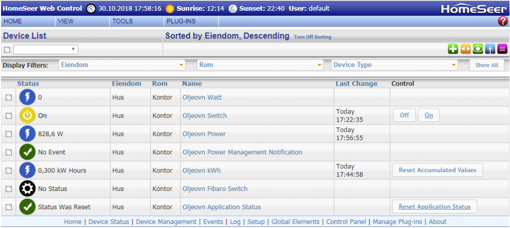 Ser på de forskjellige nodene som dukker opp i HomeSeer og lurer på hva de forskjellige er.