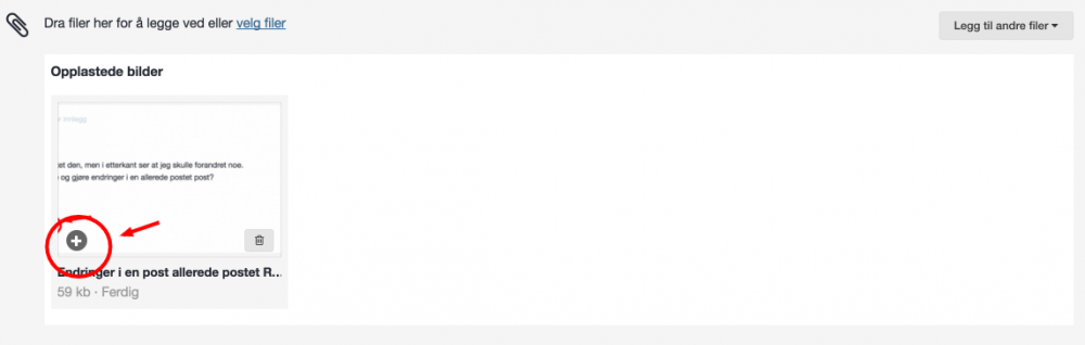 6. Flytt først tekst markøren til der du vil plassere bilde. Deretter trykker du på pluss tegnet ved bildevedlegget som vist på bildet under for å plassere bildet. - Prøv igjen