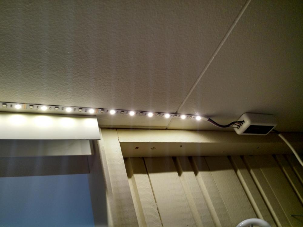 17 mai idag så har ikke gjort noe, men igår fikk jeg endelig montert og automatisert lys i en skyvedørsgarderobe. Lyset er ledstriper kontrollert av miLight, automatiseringen er  en bevegelsesdetektor koblet til alarmsystemet.