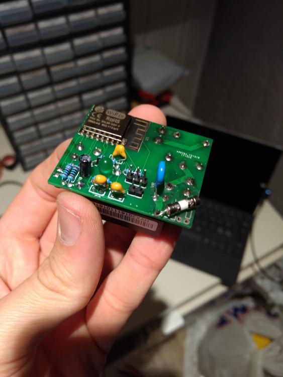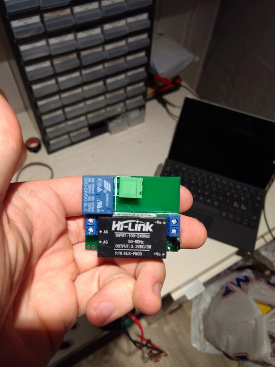 Fått laget meg noen Wi-Fi relér basert på ESP12 og HLK-PM03 220v->3.3v. Kretskortet passer i standard Elko veggboks, inngang for bryter og rele for å styre lys eller. Max 4A uten å legge en latchkabel på relét (som tåler 10A). Programmerer den med en FTDI adapter via Arduino IDE. Bruker Arduino plugin i HS for kommunikasjon, men modulen virker frittstående via bryter inngangen. Planen er å støpe inn hele kortet utenom tilkoblingene i epoxy resin for å få det isolert og for ekstra sikkerhet. Et par ting som jeg vil prøve å få endret på etterhvert, men alt fungerer som det skal. Tenker å se om jeg får integrert en DS18B20 for å se temp på kortet, kanskje en header for å kunne koble til en ekstern DHT22 el. Ekstra innganger er jo alltid kjekt. Monterte feil varistor, så den tok kvelden, derfor litt sot på kortet på bilde? Sikring og termosikringen var større enn forventet, så ble bare plass til sikringen på dette kortet.4 poeng