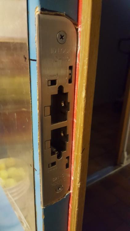 Da kom endelig dagen og ny ID Lock 150 har blitt montert. Det tok meg 2-3 timer tilsammen med demontering av gammel EasyAccess lås, montering av ny ID Lock. Lage nytt hull til sluttstykke fra ID Lock og montering. Tilpasning var ikke nødvendig da jeg tydeligvis hadde gjort en god jobb med å måle opp for det nye sluttstykket. Det gamle sluttstykket ble demontert og nytt hull ble laget ved hjelp av for det meste huggjern. Fant ut at det var det beste verktøyet da jeg hadde mer kontroll. Takk til alle som har bidratt med gode råd og tips.3 poeng