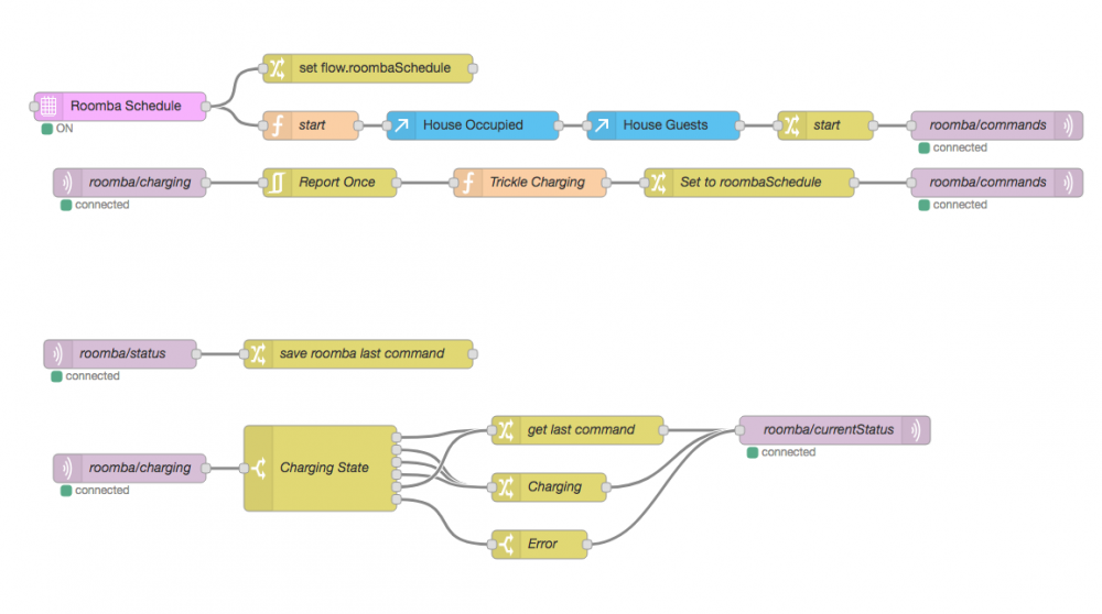 Med to katter og en 9 måneder gammel baby i hus, hadde det unektelig vært kjekt med en robotstøvsuger for å få unna det verste av støv og skitt som ligger rundt. Problemet er bare at vi har to etasjer, og å ha to robotstøvsugere til flere tusen kroner er ikke aktuelt. Vi har prøvekjøpt en støvsuger tidligere, men jeg ble ikke mektig imponert da det var flere steder den ikke kom seg rundt. Likevel klarte jeg aldri å legge vekk tanken om å ha en liten hjelper i hverdagen. Gleden var stor da jeg kom over en video av The Hook Up på YouTube, som viste hvordan du kunne smartifisere eldre Roomba-er. De er nemlig utstyrt med en mini-DIN-port under dekselet på toppen. Denne kan du enkelt kommunisere med og spesifikasjonen ligger åpent på nett. Jeg kjøpte en brukt støvsuger på Finn og de nødvendige delene på AliExpress. Etter en times tid med programmering (copy/paste fra The Hook Up), oppsett i Home Assistant, lodding og litt tilpassing av dekselet på støvsugere, var alt i boks. Støvsugeren er nå integrert med Home Assistant, via en ESP-01 og kommunikasjon over MQTT. Den er også satt opp mot Node-RED for litt tidsstyring av støvsuging. Blant annet støvsuger den på hverdager i et gitt tidsrom hvor ingen er hjemme, basert på tilstedeværelsessensorer. I tillegg får jeg inn informasjon om batteristatus og status på støvsugere (støvsuger, lader, returnerer etc). Alle delene kostet under 15 kr, og arbeidet tok bare én time fra start til slutt. Så da sparte jeg noen tusenlapper, og planlegger allerede å anskaffe en Roomba til den andre etasjen. Høy trivselsfaktor og fruen i huset ble veldig fornøyd! Legger ved et par bilder av resultatet. Jeg lagde et hull i dekselet der porten ligger for å enkelt koble til/fra med jumper wire, da jeg ikke syntes ledninger rett i porten satt særlig godt, og at elektronikken under dekselet ville presset på dekselet. Tanken er å feste enkelt med hvit elektrikertape. Disclaimer: Jeg har ikke funnet ut noe av dette selv, alt kommer fra videoen lenket lenger opp i innlegget.10 poeng