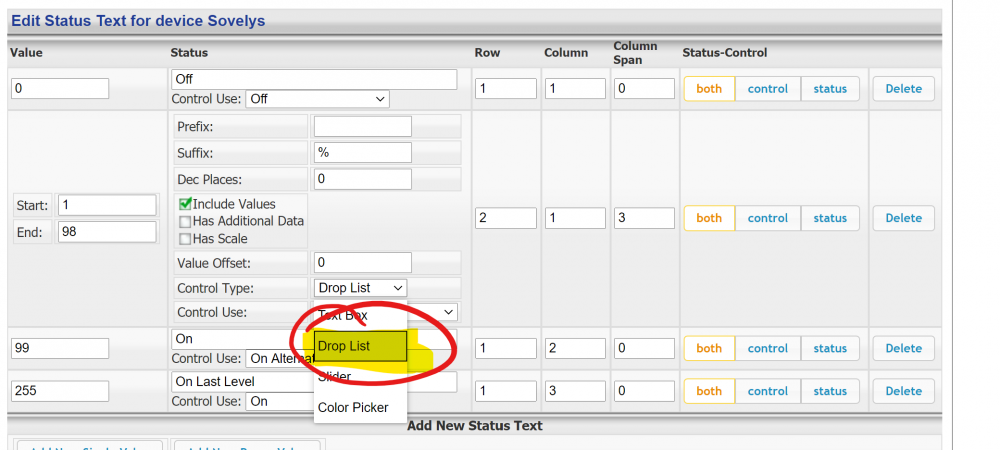 6. Det kan nok heller skyldes noe dårligere kommunikasjon når du la dem til. Du kan f.eks. prøve en rescan. For å ha stålkontroll på dimming på utvalgte lamper, pleier jeg å bytte fra slider til nedtrekksmeny. Gå til Multilevel-devicen og g Da blir den slik: