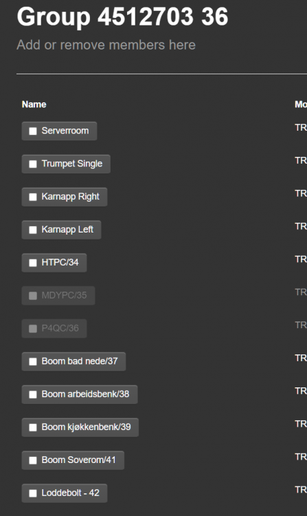 I går tok jeg alle de enkle Z-wave nodene i dag hadde jeg "bare" de vriene i gjen.... ..det tok hele denne dagen Men jeg har litt erfaring å dele da ihvertfall: Det lønner seg å Remove dem fra HS3 før du Inkluderer dem i HS4 De neste punktene gjelder BÅDE remove og Inklude Om ikke trippelklikk på (impuls) bryteren funker må du inn til Fibaroen og trippel klikke på "B-Knappen" Funker det ikke først gang, prøv igjen. Funker det ikke andre gang, ta sikringen av og på og prøv igjen (funker 90% av tilfellene) Det KAN hende at trippelklikk på bryteren funker på Inkluder selv om det ikke funket på Remove I HS3 var jeg vant med å måtte ha devicene 20-50cm fra z-wave kontrolleren for å unngå meldingen om "Failed to get a SECURITY SCHEME or verify the key from node" Jeg hadde forventet at jeg skulle bruke USB forlenger og i verstefall måtet flytte HS4 PCen rundt i huset men: Kun 2 av de 81 nodene jeg la inn klaget på at de ikke kunne forhandle security. Og begge aksepterte det på andre forsøk (remove og Inklude på nytt) OK Ikke alle nodene er nye nok til å ha denne funksjonen men alikevel! Det gikk litt i surr så det KAN riktignok hende at samtlige noder hadde direkte radio tilgang til kontrolleren da de ble inkludert første gang men vi snakker 10-20meter og ikke cm her. Jeg husket at jeg hadde funnet ut noe lurt med Alexa kommandoene men hadde glemt hva. Men her kommer forumet som vanlig til uvurderlig hjelp og jeg fant igjen denne artikkelen (som jeg selv hadde skrevet for 4 år siden ) Så utelampa på terassen som vender mot sør utenfor kjøkkenet fikk denne talekommandoen: Kitchen terras south pouch first floor balcony lamp light I morra blir det Eventer og HSTouch....1 poeng