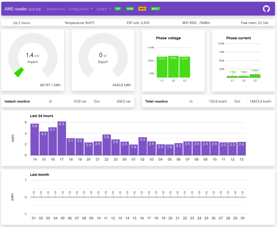 Hei @rhe! Jeg er personen bak amsleser.no (Pow-K og Pow-U amslesere) og bruker både Domoticz og Mosquitto på en RPi. Det er lenge siden jeg satte det i drift, så husker ikke detaljene - men vil forsøke å hjelpe deg! Jeg er litt usikker på hvor det stanger hos deg, men det første du må gjøre er å forsikre deg om at brokeren (Mosquitto) fungerer som den skal, og videresender det som publiseres. Et godt hjelpemiddel er da å installere en MQTT-klient på PCen. Der er sikker mange PC-klienter der ute, jeg har en gammel versjon av MQTT.fx. Jeg ser nå at dette har blitt et kommersielt produkt (betaling!), men du finner gamle versjoner her: http://mqttfx.jensd.de/index.php/download Jeg har hatt 1.7.1 installert lenge, og den har gjort jobben for meg. Først må du der opprette profil hvor du legger inn IP-adresse og portnummer på din Mosquitto-broker, så koble deg til den. Dersom det fungerer får du "grønt lys" oppe i høyre hjørne: Den åpne hengelåsen viser at jeg ikke har satt opp min broker med brukernavn og passord. Skjermklippet ditt ovenfor indikerer at du har brukernavn/passord på brokeren, da regner jeg med at du får en lukket hengelås i stedet. (Det er kanskje lurt å starte uten bruker/passord, så er det en ting mindre å holde rede på; du kan alltids legge det til senere). Deretter skal det bare være å "subscribe" til det "topic" du har definert i firmwaren på din amsleser - så skal det begynne å tikke inn data. Mitt oppsett på Pow-U: Her er payload som da dukker opp i MQTT-fx: Når du har dette oppe å gå kan vi ta det videre herfra! EDIT: For å få en så pent formattert JSON streng velger du format nede i høyre hjørne på MQTT.fx:1 poeng