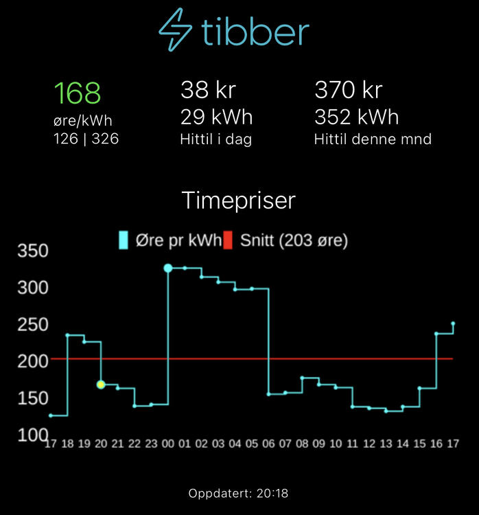 Mange har savnet at det ikke finnes en iOS-widget til Tibber-appen. Men, Tibber har jo et fantastisk API, så da kan man jo lage det selv! 3 forskjellige størrelser: Instrukser og kode finner man på GitHub her: https://github.com/svenove/iOSTibberWidget Her ligger også instruksene på norsk: PS: Er du ikke Tibber-kunde finner du invite-lenke i signaturen min, som gir oss 500 kr hver.2 poeng