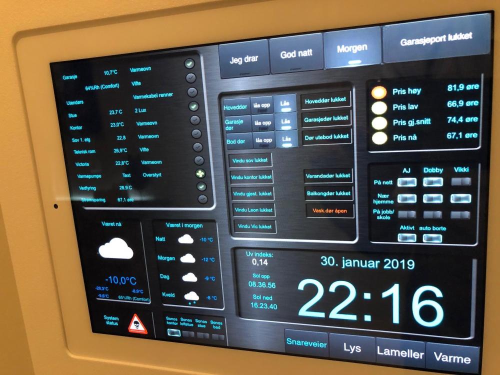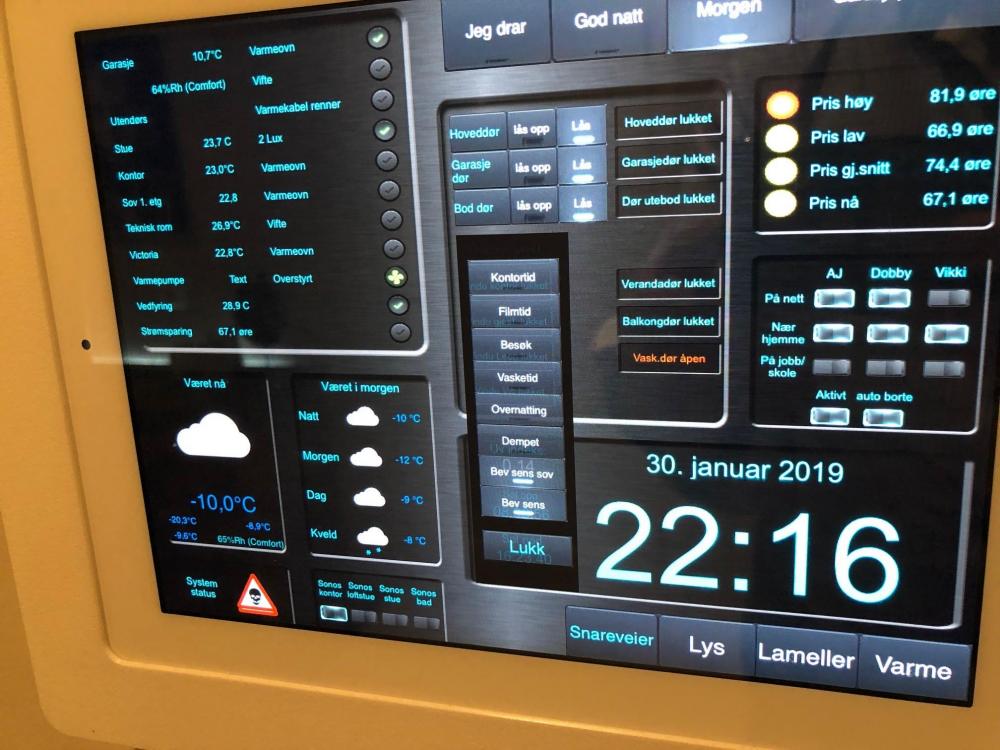 Jeg startet med lavbudsjett smarthus type Rasberry pi og Z Wave stick og prøvd litt forskjellig, jeg ser at mine ambisjoner overgår evnene og har erfart at jeg ikke har vett, tid eller tålmodighet til å bruke tid på noe som ikke virker rett ut av boksen og er noenlunde intuitivt. Til slutt ble det en Homey å først da ble huset smart. Heldigvis satset jeg på Z Wave og har Fibaro2 dimmer piller bak de fleste lysbrytere, disse kan jeg varmt anbefale, jeg har og noen aeotec multisensor som jeg er fornøyd med (på landstrøm). jeg har noe Zigbee utstyr og, endel ikea rullgardiner og noen lyspærer, vannlekkasjesensor og dørsensor på lekestue og utebod. Alt utstyr var enkelt emigrere over til Homey. Passe smart er et fint utgangspunkt. jeg har helt vanlige lysbrytere over hele huset, eneste forskjellen er at det er dobble brytere og de er fjærbelastet, en bryter til lyset og en til smartscener med en liten "pille" bak, dette betyr at enhver idiot kan betjene lysene akkurat som før. Jeg er ikke interessert i å skru opp en ipad på veggen for å se hva huset driver med eller stille temperaturer eller lys, rullgardiner eller hva det måtte være, jeg bare ha det digg og at mest mulig går av seg selv. Jeg trykker på en lysbryter en gang i døgnet, det er når jeg legger meg, da dimmes alle lysene som er på sakte ut i en rekkefølge som jeg synes er stilig. Når jeg går på badet etter kl XX om morgenen starter huset dagen og jeg er registrert som våken ,hvis det er behov for lys dimmes disse opp til en passe verdi som ender seg gjennom dagen, ettermiddagen og kvelden, rullgardiner, utelys og slikt greier seg selv. hvis jeg forlater hjemmet er det endel parametre som endrer seg naturligvis og alt kan overstyres manuelt eller med apper og hva det måtte være. Hvis du bygger et system som funker manuelt så gjør det ikke noe om det tar litt tid å lage smarte scenarioer eller flows, så kan du kose deg med litt automatisering når du har tid og lyst. Det er kun en dings jeg ikke er fornøyd med, varmekablene på badet styres av en HeatIt Z Wave som aldri har fungert som den skal, mulig at de nye utgavene er bedre men jeg har landet på å styre unna Heatit i framtiden. Ja også er det den fordømte komfyrvakta da, hater den...1 poeng