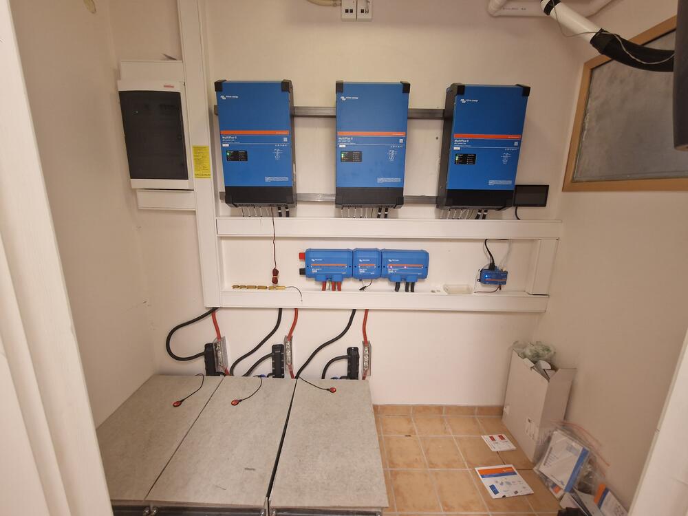 Fikk tatt i bruk anlegget denne uken og alt fungerer så langt (uten solar inntil videre). Brukte litt tid til å få alt riktig konfigurert. Endret opp med å sette ESS-mode til 3 (external controll loop) og kjøre mitt egent løp - fordi med ESS-mode 1 får man ikke flyttet strømforbruk til når strømmen er billig, og ESS-mode 2 har ikke støtte for å sette en maks SoC (den vil alltid lage til 100%). Det fine med ESS-mode 3 er også dersom kontroll-loopen skulle dø, og inverterene ikke får noe mer instrukt i løp av 60 sekunder, så vil den automatisk gå til "passthrough" modus, som betyr at den verken lader eller lade ut batteriene. E.g. AC IN = AC OUT. Da slipper man å risikere at den går løpsk og havner utenfor SoC-limits. Da får man full control over hvor mange Watt som batteriene skal lades (eller utlades) med til en hver tid. Har programert det slik at den ta hensyn til strømprisen, SoC limits og (ut/)lade begrensninger som jeg har satt.1 poeng