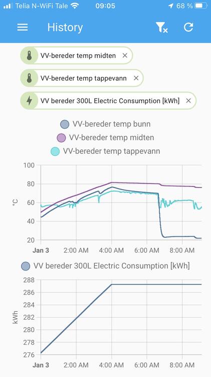 Jeg har så langt ikke hatt behov for å trykke på den knappen annet enn ved bytte av HomeAssistant HW (til HomeAssistant Yellow med ZWave modul). Ang bore hull var det mer spennende å lage hull i ytterkappen på VV-bereder for å montere temperatursensor(er). Ref diskusjon om styring av VV-bereder på denne siden og veiledning på selve temperaturmålere her: https://smarthomescene.com/diy/diy-waterproof-double-probe-temperature-sensor-with-an-esp32/ Med en sensor midt på tanken (dyttet innenfor isolasjonen), en på toppen på selve blandebatteriet og en i bunn (også innenfor isolasjonen) så kan jeg følge temperaturutviklingen i tanken. Planen er å lage en automasjon som skrur på bereder også når det er dyr strøm om den er i ferd med å tømmes helt - før det merkes. Nå styres den av Powersaver og er på 8 timer hver natt, det trengs normalt her. Akkurat den diskusjonen passer bedre i tråden jeg lenket til over. Heavy duty switch og temperaturmålere gir i alle fall mulighetene til å gjøre det. 🙂1 poeng