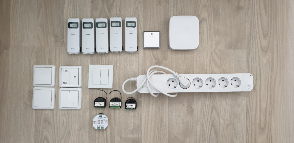 Har ryddet litt i skuffen og selger følgende: 433mhz: 8stk Clasohlson Temp/hum sensor WT450H - 50,- pr stk - 5stk SOLGT, har 3stk tilgjengelig. 2stk Nexa LWST-605 - 50,- pr stk (den ene mangler gummifjærer så føles litt slapp, men virker fordet). 2stk Nexa LWST-615 - 50,- pr stk 1stk Cotech Wallswitch 2gang 36-6464 - 50,- 1stk Biltema Temp/hum sensor 84-0820 - 50,- (denne fikk jeg ikke til å virke med rfxcom). Z-Wave: 1stk Greenwave 6x stikkontakt z-wave styrt NP210-F - SOLGT 1stk Fibaro Releswitch FGS222-EU V2.1 - 300,- 1stk Fibaro Group Dimmer FGD212-EU V3.2 - 300,- 1stk Fibaro RGBW Controller FGRGBWM-441 - 300,- 1stk Aeotec Smart Dimmer (2.edition) DSC19103-ZWEU - 250,- Zigbee/Zwave: 1stk Smartthings HUB v2 - 500,- (Uten strømforsyning, litt usikker på jeg har greid å resette den). Alt utstyr er brukt og virker, prisene er +/- halvparten av nypris. Det du ser på bildet er hva du får. Har ikke noen brukermanualer, esker etc. Frakt kommer i tillegg og varene sendes mot forskuddbetaling på VIPPS. Ønsker du å kjøpe noe så send meg pm med navn og adresse, så sender jeg totalbeløp ink frakt og tlfnr for vipps når jeg har pakket og sendt varene. Gi beskjed om du ønsker at det skal sendes med sporing. Varene kan også hentes på Nøtterøy etter avtale. Jeg vil ikke greie å få sendt noe før påske, så det vil bli sendt uken etter påske.