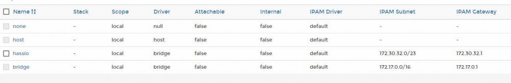 tja... Jeg bruker den configuratoren som ligger i hassio. Og gjør jeg endringer der så synes det på dashbordet mitt. Somfy (tahoma) og Mill hadde jeg ikke lagt inn på den andre config`en. Det jeg lurer på, er om enten ikke hassio har kontakt med omverden ut av docker, eller om det ligger noen forflytninger av ip eller port i docker som jeg ikke ser. Har lagt inn portainer og sånn ser network ut der: Er helt grønn på docker... -