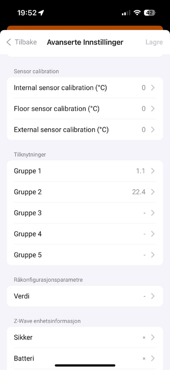 9. Men hvor endres dette og hva skal jeg endre til for å få termostat funksjon? Jeg kan fint endre modus ved å bare gå inn på enheten, men det hjelper ikke.