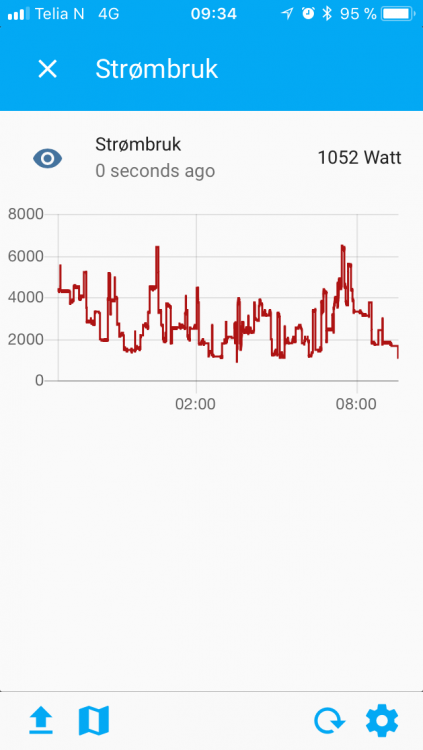 9. Endelig, etter uker med fomling og gjerde-sitting, har jeg fått montert avlesning hos meg. Største bøygen har vært å vri hodet fra "høyspent" kabling til elektronikk-spenninger. SMD-lodding er noe dritt, brant gjennom en del kort/komponenter, før det ble en kombinasjon av Huzzah med breadboard ttl-level shifter - denne skal loddes når kretskort kommer, kan da slenge på en DHT sensor for tavla også, før det kommer en 3d printet "pocket" å sette suliamitten i. Brukte "simple-han-reader-to-mqtt" ino'en fra github, men blir nok å endre denne, siden kun power ligger i mqtt stringen. Egentlig godt gjort for lille ESP'en å snakke gjennom tavla, da den nesten kan betegnes som et faraday-bur? (fra blidet kan man lese at samkjøring/nattsenk ikke er optimal, vi venter på nye termostater. ( gamle termostater er veldig, veldig dumme idag ?)