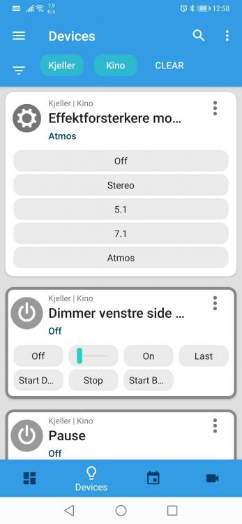 Beklager en noe dårlig tittel... Jeg har en god del dimmere rundt omkring i huset. Stort sett ser de nokså like ut i Homeseer, men enkelte kommer opp litt annerledes, noe jeg antar skyldes forskjellig firmware? Egentlig er det ikke noe jeg bryr meg om overhode da de NESTEN utelukkende går på full automatikk og eventuelt overstyres av fysisk bryter. Dessverre er det tre dimmere jeg ihvertfall inntil videre styrer litt i appen, og av disse er det èn som har litt flere valg enn andre.. I appen ser den sånn ut: Og i webgrensesnittet ser den sånn ut: Det er nokså håpløst å justere dimming på den når skalaen har fått like stor plass som alle de andre knappene der..... Er det noen som har noe tips til hvordan jeg kan endre på dette? Jeg har ikke bruk for noe som helst annet enn å justere dimming på den i appen, men av og til er det nokså greit å ha mulighet til å justere nettopp den dimmeren fra appen..