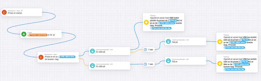 Men vet ikke helt hvordan jeg skal gå videre herifra for å få full oversikt over strømforbruket i huset, samt lage flower som styrer forbruket på en smart måte for å redusere kost, feks slå av vvb/termostater ved dyr strøm. (trenger ideer til flows)