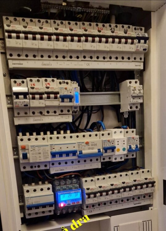 4. Jeg har et 400V TN anlegg hjemme med 31 vanlige kurser og 3 stk 3-fase kurser (1 til bil, en til boblebad og som kommer fra solceller). Jeg ønsker inviduell overvåking av forbruk av samtlige kurser i huset. Noen som har forslag til hvordan jeg gjør dette? Må være intigrertbart med home assistant/Tuya (noe de fleste systemer er). Det enkleste om det jeg ønsker helst er jo effekt klemmer rundt tilførsel som ikke krever videre installasjon slik som denne: https://www.aliexpress.com/item/1005008119135760.html?src=google&pdp_npi=4%40dis!EUR!116.30!101.23!!!!!%40!12000043884989857!ppc!!!&src=google&albch=shopping&acnt=298-731-3000&isdl=y&slnk=&plac=&mtctp=&albbt=Google_7_shopping&aff_platform=google&aff_short_key=UneMJZVf&gclsrc=aw.ds&&albagn=888888&&ds_e_adid=&ds_e_matchtype=&ds_e_device=c&ds_e_network=x&ds_e_product_group_id=&ds_e_product_id=en1005008119135760&ds_e_product_merchant_id=775532271&ds_e_product_country=NO&ds_e_product_language=en&ds_e_product_channel=online&ds_e_product_store_id=&ds_url_v=2&albcp=21627925185&albag=&isSmbAutoCall=false&needSmbHouyi=false&gad_source=1&gad_campaignid=21634522559&gbraid=0AAAAAqc5ie1pLpPrL5z2MYPA6G6e8bJA3&gclid=Cj0KCQjwlYHBBhD9ARIsALRu09qXHG3cV4V9vNgLeHf2HFGDoymkLiJsl2n6NkIYU9UrlipgYB2ckJkaAvT2EALw_wcB Vurtderer 2 stk av disse, men Problemet med denne er jo at den ikke måler mine 3-fase kurser. Alternativ er da å kjøpe 3 stk wifi 4p 400v Aliexpress sikringer (CE godkjente) på disse. Noen som har efaring med nevnte linkede produkt, eller har forslag til andre tilsvarende produkter til såpass mange sikringskurser?? (Jeg er fra tidligere både L og A montør, selv om det er mange år siden jeg jobbet med dette). TOMZN 2P 63A TUYA WiFi Smart Switch sikringer er jo også et alternativ, men er skeptisk til å bytte ut alle sikringer med Kina-sikringer (selv om de er CE godkjente). -R.