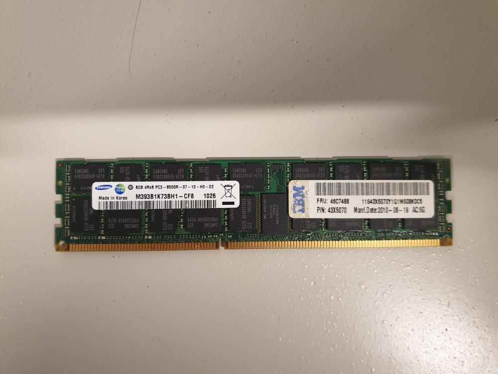 Selger 256GB - 32stk Samsung 8GB 4Rx8 PC3 8500R. https://www.samsung.com/semiconductor/dram/module/M393B1K73BH1-CF8/ 1500 samlet, evnt bud på antall. Befinner seg i Ålesund. Kjøper betaler evnt frakt