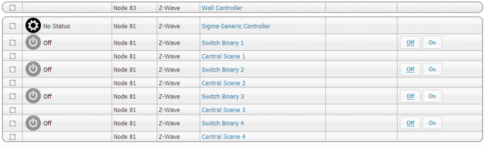 Begge bryterene er kjøpt på intin, men med litt forskjell. Får Node 81 til å funke slik delvis men får ikke dimmingen til å funke. Derfor kjøpte jeg en til slik at jeg kunne sammenligne dem for å se om det var noe feil med den første hehe Z-Wave versjon: