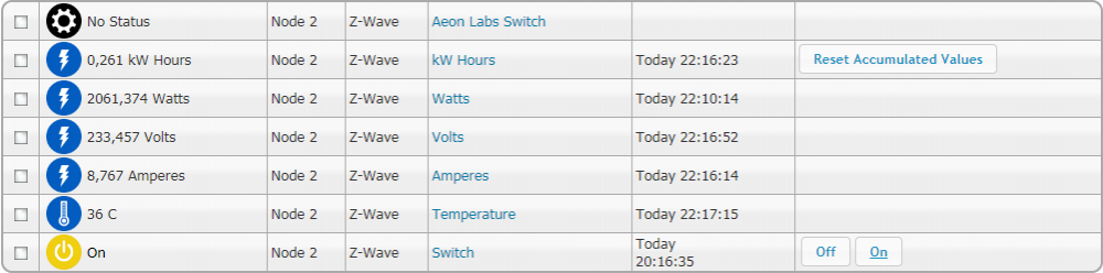AEO_HDS_ Aeon Labs Heavy Duty Smart Switch Gen5 V1.25_Engineering Spec .pdf AEO_HDS_Manual.pdf Aeotec ZW078 er koblet opp på varmtvannstanken. Har fått brukt endel varmtvann og den rapporterer følgende: Da jeg holdt på tidligere la jeg merke til at volt og temperatur også ble rapportert. Ser disse ikke rapporteres nå.