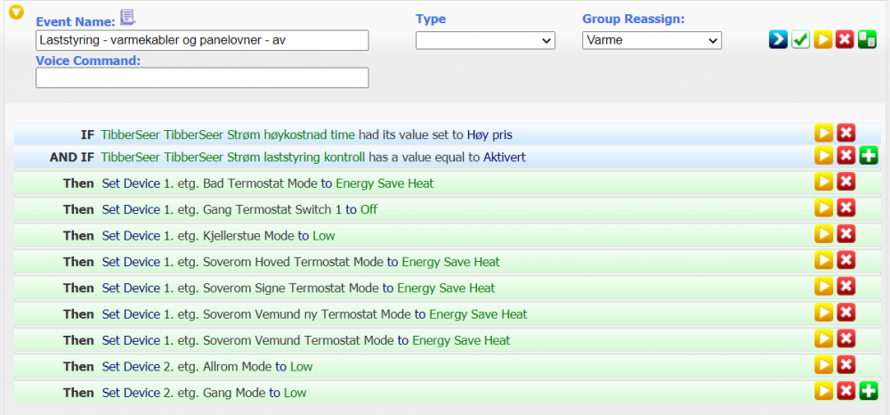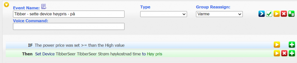 Takk for fiks @Moskus! Plugin fungerer ypperlig til enkel laststyring, jeg kobler ut el-varme og VVB ved "høy pris" og det gjør virkelig utslag i de dyreste timene, uten at vi merker noe på komforten.