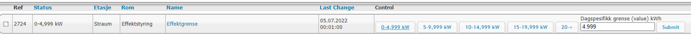 8. Dette får du til med events, det har i alle fall eg gjort. Trur eg. Devicen "Effektgrense" ser slik ut: Og ved "dagspesifikk" blir den satt ned att ved neste midnatt: