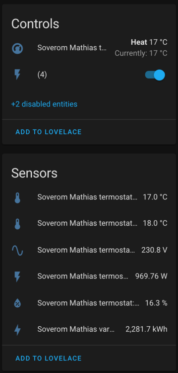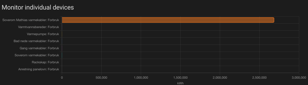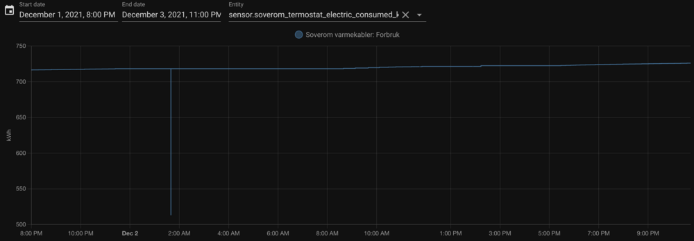Ja, og uansett om det skyldes stick eller heatit-termostatene burde vel strengt tatt energy-modulen helst filtrert vekk slike oppdateringer, altså at kWh-målinger går nedover eller svinger veldig på kort tid. Såvidt jeg har fått med meg er det vel ikke noen rett frem måte å fikse dataene på, så energi-målingene i HA hos meg er jo mer eller mindre ødelagt.