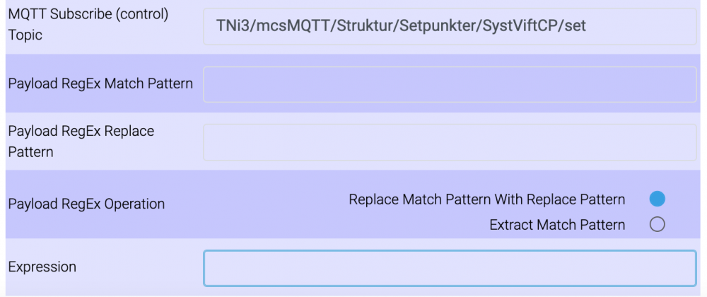 Hei Jeg benytter mcsMQTT i HS4 og en elller annen oppdatering enten i plugin´en eller HS gjorde at oppsettet mitt ikke lebgre fungerer like bra. Jeg har flere VDs hvor jeg lagrer "setpunkter" for vifter(min/med/max) og modier(varme/kulde) og disse har jeg overført til et smartpanel med MQTT hvor jeg kan lese og modifisere verdiene. Oppdateringer skjer begge veier. I MQTT-oppsettet har jeg brukt $$STATUS: i feltet for "MQTT Publish Payload Template" og dette har "trykket ut" tekst-verdiene på payloaden slik jeg ønsker. Oppdateringer kom tilbake som tekst-verdier også og har tydeligvis "koblet" seg opp til status-feltet i VD´en. Dette har fungert finfint i alle henseender. Nå fungerer dettte ikke like bra, og jeg klarer ikke å sette tekst-verdiene fra "kommandoknapppene " i en VD dersom jeg bruker $$STATUS:, og etter litt "teksting" på HS-forumet fikk jeg tips om å benytte $$LABEL: istedet. Grunnen til dette er at plugin reagerer på knappetrykk gjennom $$LABEL. Nå fungerer den gjensidige oppdateringen mellom VD i HS og smartpanelet...MEN...så kan jeg ikke lenger bruker VD´en i EasyTrigger events action (set device to another device). Grunnen er at EasyTrigger nok bruker value eller status og IKKE label hvor informasjonen min nå befinner seg. Det er (kanskje naturlig nok?) ikke noen automatisk aligenment mellom treenigheten value, status og label...ved oppdatering av label. Kjører jeg de gamle eventene så settes de egentlige status-verdiene som ligger "bak/under" det som tilsynelatende ser ut som status, men er label. Så nå er jeg i en liten knipe. Finnes det noen måte når man subscriber å få innkommende payload til å bli "trøkket inn i" VD´ens status (istedet for label som jeg tror er saken dersom man benytter $$LABEL på publish)? Ser at nederst i MQTT-oppsettet at det er noe som muligens kan gjøre noe slikt?