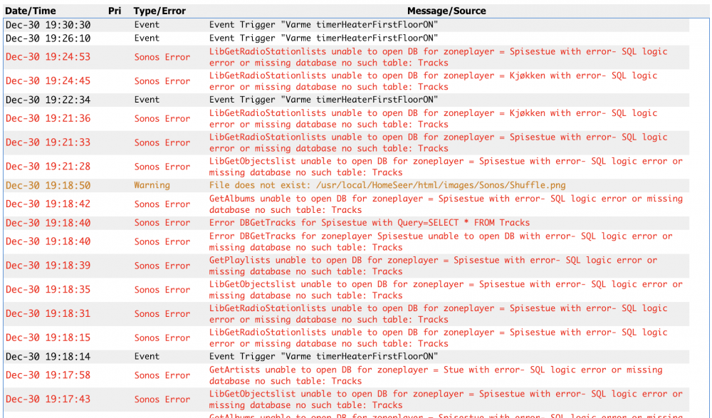 7. Takk for tips, - dog ser det ut til at det var en læringsprosess jeg ventet på.... Nå begynner det å dukke opp ting, og feilmeldingene er borte.... Et lite spm til slutt; Ser at når man gjør SONOS ACTIONS kan man ikke velge flere høytalere om gangen. Noen tricks? Må man duplisere actions, eller kan man gjøre noe smart?