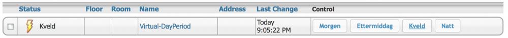 7. I en event, - hvordan kan man kontrollere en gruppe av devicer, istedet for en og en? Ser for meg at man f.eks har en event, "god morgen", som starter kl 0600, og et sett med lys slås på automatisk. Hvordan velge en gruppe, fremfor en og en device? Er løsningen å bruke z-wave action - og velge iht rom/etasje? Dog, her har du bare "on/off" ikke type sette dimmenivå osv.