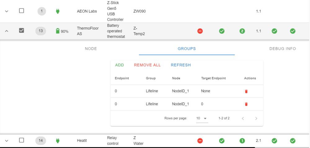 Kobling (association) av heatit Z-water og TMP2 (Home Assistant)mrhaugland svarte på FizCarloz sitt emne i Home Assistant Forsøker febrilsk med det samme, men får det ikke til. Har lagt til Z-water og Z-temp2 unsecure. Har forsøkt å sette opp group som i skjermbildet. Men ingenting skjer om jeg gjør endringer på termostaten i HA. Hva er det jeg ikke forstår? Jeg føler på meg at det skulle vært satt opp flere assosiasjoner.
