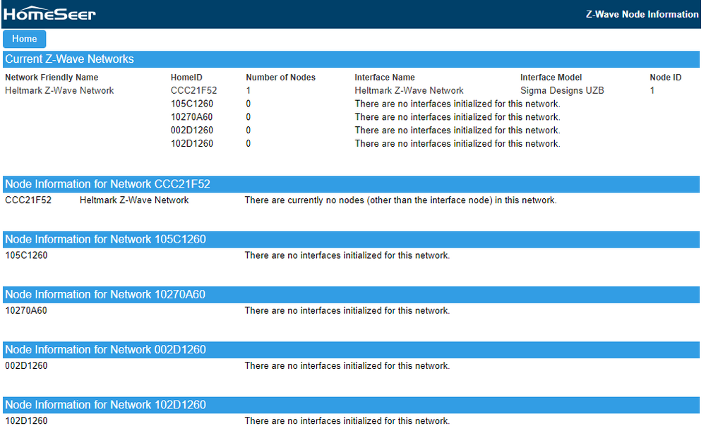 Det hadde jo vært fantastisk om det var slik du først nevner. Men her kommer jeg til kort. Hvordan finner jeg ut, og har du noen tips om veien videre? Slik ser Node Information ut. Hvorfor det er så mange nettverk, er helt ukjent for meg: Og fra Z-wave Controller Configuration: