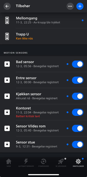 Forsøker med en pantomime her. Følg bildene i den rekkefølgen de står, altså "Innstillinger" - "Tilbehør" - "Sensor X"
