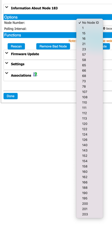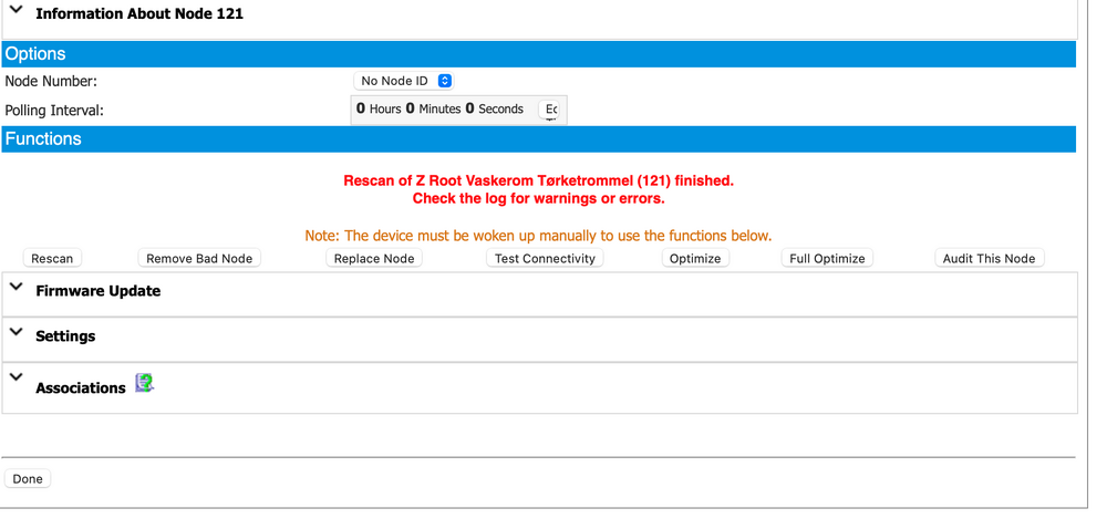 I håp om «quick-fix» herfra har jeg ikke sammenlignet Node Info med Device List - voldsom jobb, enda.