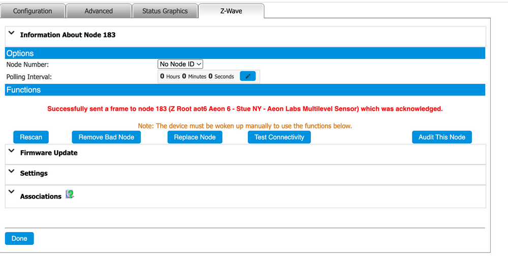 Aeotec multisensor rapporte sist om natten 1. april, ingen node id.
