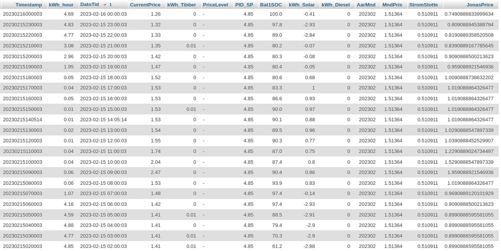 Ja, jeg har tid til å tilpasse meg men gulroten for å investere i batterier er plutselig borte... Jeg fant jo også ut i går kveld at beregningene for inntjening av solcelle/batteri er for pessimistiske siden jeg ikke tok hensyn til de timene der strømprisen er under 70 øre, får se litt på det i dag... SQL er et fantastisk verktøy. Flott stasminister vi har: Hva som blir lettere å følge med på er vel at en VET strømstøtten time for time i stedet for å måtte vente til slutten av måneden for den er helt 100% avgjort men å påstå at "fellesskapet" tar 90% av strømprisen... Det finnes mange beskrivelser av de som sier slikt men de passer ikke på trykk... Fellesskapet er jo allerede karnøflet så det holder og så betales noe av ågerprisen tilbake igjen og så påstår han at ordningen er dyr for staten... Staten tjener jo grovt på at folket sliter med strømregningen... -