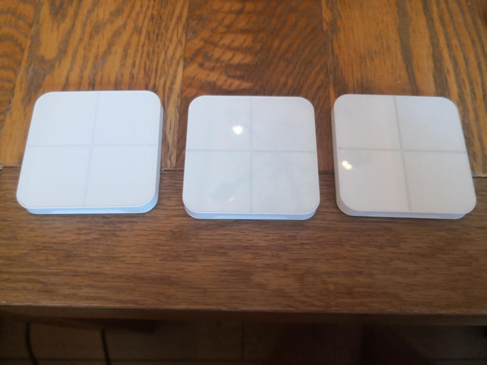 https://www.kjell.com/no/produkter/smarte-hjem/smarte-hjem-losninger/aeon-labs-smarte-hjem/aeotec-wallmote-quad-tradlos-z-wave-fjernkontroll-p50891 Selges helst samlet. Med magnetisk montasjeplate men medfølgende dobbeltsidige tape er brukt og neppe særlig brukende igjen.