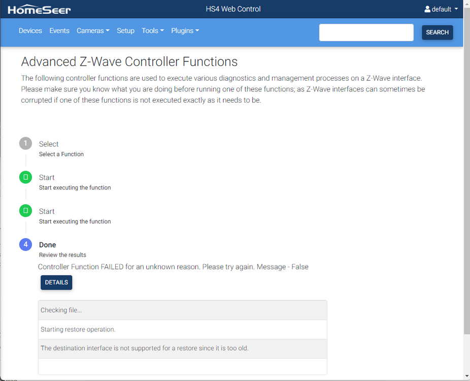 Får ikke tatt restore av backup - Ny controllerbackup er "too old"TropiskNektar publiserte et emne i Z-Wave Jeg følger den guiden jeg linker til under, og når jeg tar backup - så restore på controlleren via HomeSeer, så får jeg beskjed om at backupen er for gammel. Er det noen som har forslag til hva jeg kan prøve? Z-wave optimalisering er sekundert, min primære bekymring er at jeg ikke kan ta restore av backup... Backupen er fra i dag kl 14:30 - og jeg prøvde backup av den filen noen sekunder etterpå, og nå 5 timer etter. Samme feil begge gangene - "Backup too old" Jeg har en eldre Aeotec Z-Stick Gen5, så jeg prøvde å laste ned ny firmware til 1.02. Det var no-go. Prøvd å oppdatere firmware på 3 forskjellige datamaskiner, og hver gang jeg trykker "start" i update toolen, så får jeg beskjed om at COM porten ikke eksisterer og sticken forsvinner fra Device Manager. Etter alt styret med å oppdatere firmware som ikke gikk, så satt jeg den tilbake i HomeSeer serveren og prøvde ny backup/restore - samme feil. Any idea what to do now? HomeSeer 4 - siste versjon