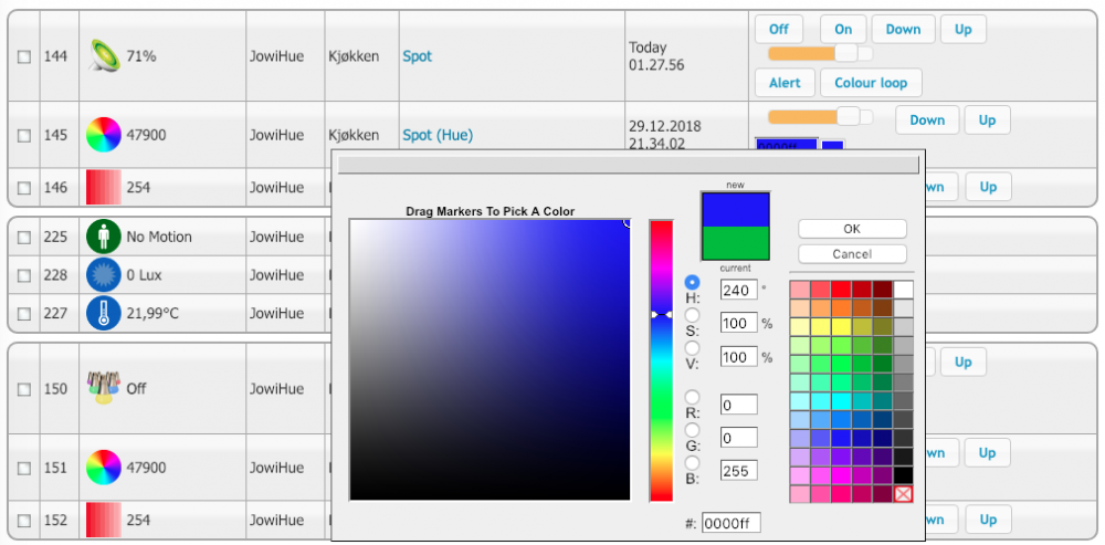 HomeSeer (HS3) og Homebridge på Raspberry Pi 3 Model B+ReidarRoen svarte på ReidarRoen sitt spørsmål i Nybegynner Da fungerer det meste så langt, MEN styring av farge på LED-striper og lamper (Hue og IKEA) på HomeKit får jeg ikke til. Av/på og dimming er greit, men farger er det ikke mulig å finne ut av. Alt lys (lamper) er satt opp via Conbee Zigbee-kontroller - HomeSeer - HomeBridge - HomeKit. Mulig en grei forklaring/løsning på dette, men som ganske "grønn" på området håper jeg noen av dere meget erfarne kan fortelle hva som gjelder (hvordan eller at det ikke er mulig). Har googlet en del først uten å finne ut av det...