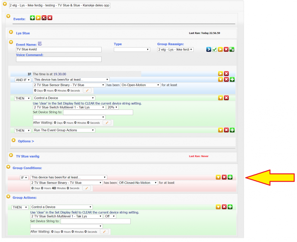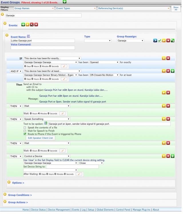 Men det fungere da.... Satt tider / hendelse over her, og den lukket garasje port som den skulle, fikk mail, og den snakket det som den skulle. Men hvorfor viser den ikke bevegelse på Sensor Binary Motion eller Sensor Binary Tamper