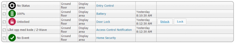 I følge teknisk manual til ID Lock skal RF Unlock Operation ha med en event parameter som inneholder RFID Index Info. Kan hende denne kan brukes til å se hvilken RFID brikke som ble benyttet ved å låse opp døra. Har prøvd å få denne til å vise i HomeSeer, men intet hell. Mulig at det kan gjøres med script. Det er også en event parameter på Keypad Unlock Operation som mest sannsynlig viser hvilken kode ble benyttet. (Master eller Service kode)