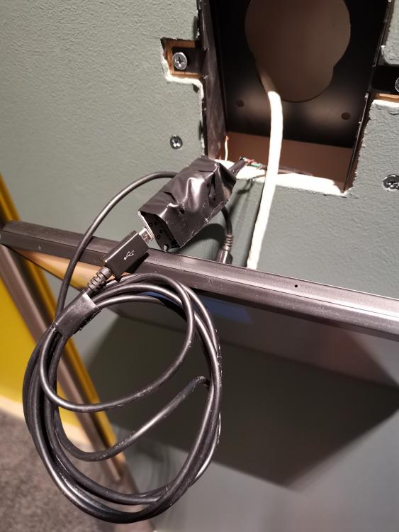 Jeg bruker de brakettene som er egnet til vinklet montering. Har bare felt de litt inn i veggen slik at tablet'en ligger jevnt med veggen etter montering. Du kan se utsparringen i veggen på bildet under. Fant ikke noe bilde av braketten montert i arkivet her.