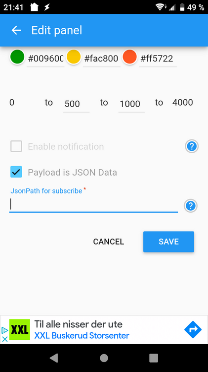 Lesing av AMS data (AMS/HAN -> IoT)tronde svarte på roarfred sitt emne i Strømsparing og strøm-overvåkning Etter mer knoting får jeg noe på skjermen. Det ser ut som om JsonPath skal være §.data.P for effekten, og at §.data.U1 blir spenningen U1 osv basert på det som står i anførselstegn for liste 1 - 3 her ? https://github.com/gskjold/AmsToMqttBridge/wiki/Message-formats Jeg har fortsatt ikke helt skjønt hva som er korrekt for feltet "Publish topic", men ser at jeg må skrive det samme i begge ender, f.eks. /meter/import/ Litt utbrodering fra noen som skjønner mer av dette ville vært fint, for det kan godt være at jeg bare fikk til noe av ren flaks. Hva er den praktiske forskjellen på payload som raw og Json, rent bortsett fra at jeg ikke ser noe med raw? Er raw binære data?