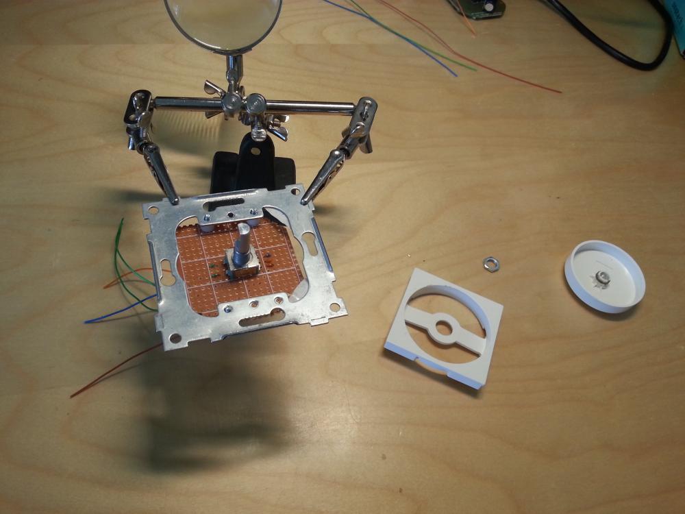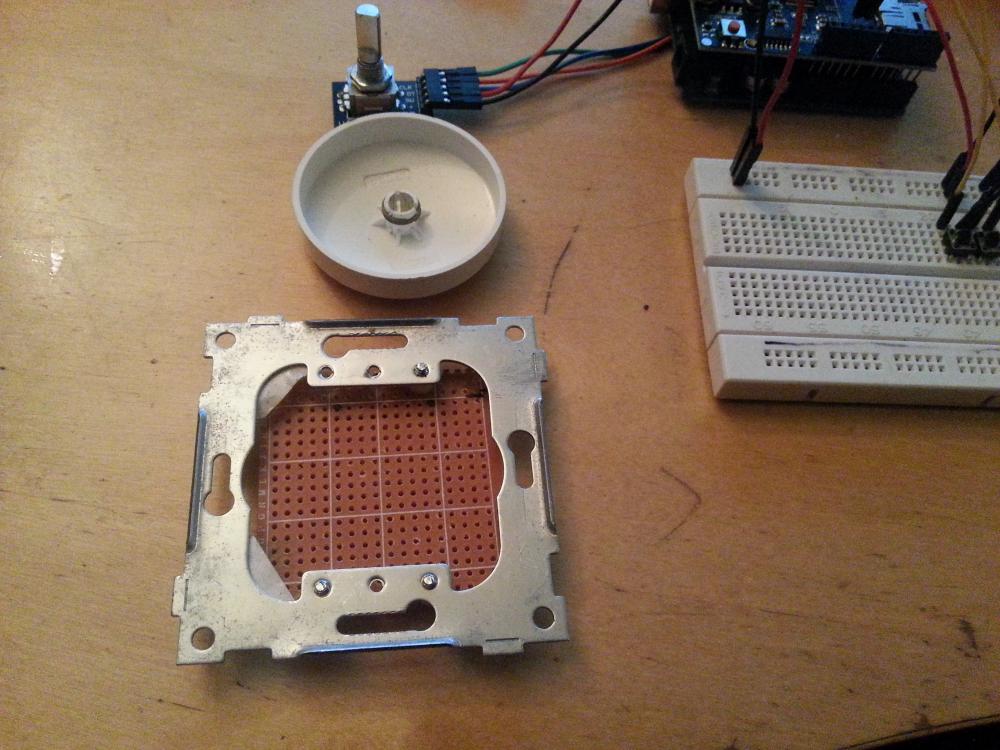 Jeg har da fått begynt litt på "dimmeren" jeg snakket om i "hva har du kjøpt i dag"-tråden, det mekaniske var ikke så vanskelig å få til, da jeg baserte det på en DSI-dimmer som var kassert fra jobb (http://www.niko.dk/produkt/74-597) som var levert med Elko-ramme jeg ser at jeg enten må kappe pinnen på encoderen eller bruke større skiver og skruer, for å få hjulet til å stemme med ramma. hvis andre vil lage samme type dimmer selv er det nokså enkelt oppbygd metall-rammen kommer fra en elko blindplate http://proff.elko.no/l433-1-sentr-pl-tett-ph/l433-1-sentr-pl-tett-ph-article2306-703.html jeg er usikker på om det er mulig å kjøpe det uten å gå via en elektriker. dimmerhjulet får man kjøpt på clas http://www.clasohlson.com/no/Elko-RS-dimmerratt/36-4780 noen skruer, plastbiter til avstandsstykke og et proto-kretskort og selvfølgelig en rotary encoder. vipps, encoder-dimmer softwaremessig sliter jeg litt mer, da jeg er helt ukjent med HS scripting. Arduinoen har jeg litt kontroll på, men det er mye klipp og lim fra eksempler. jeg har funnet flere forskjellige måter å styre lys på, men jeg er usikker på hvilken som blir den enkleste. 1. via arduino plugin -> script i HS 2. via arduino plugin -> enkle script-kommandoer/event 3. via json forespørsler sendt fra arduinoen jeg har funnet en tutorial som sikkert hjelper på vb-kunnskapene, så jeg får sette meg ned å se.( https://www.youtube.com/watch?v=dJgKGwOjYLs&t=1161s ) Arduinoen som er på bildet er bare midlertidig, siden jeg venter på en nano med tilhørende lite ethernet-kort. noen som har lyst å hjelpe til med programmering?