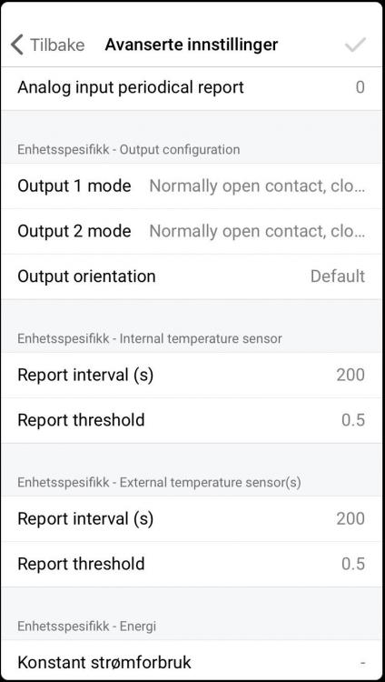 6. Ja min virker fint nå, endret fra 0,1 til 0,3 på parameter 156 for at den skulle holde litt lenger. Har du målt med multimeter om utgangene lukker eller åpner seg på smart implanten?