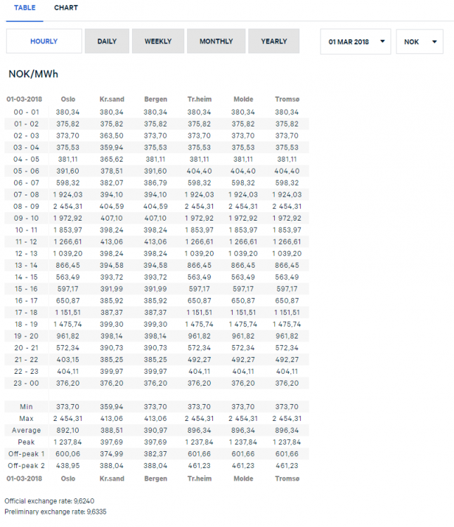 Sjokkerende lite :S. hvertfall med bare å flytte oppvarmingen noen timer seinere... har logget VVB og har KWh forbruk for hver time siden 2016. Laget litt kode som gjøre en enkel utsettelse av oppvarming til billigste time innen 3 timer utifra logget KWh forbrukt. Sånn funker programsnutten: looper dagene alle dager i året laster inn spot-priser for dagen i array looper timer i døgnet Sjekker billigeste time fra nordpool fra loop-timen og 3 timer fremover og velger billigste (og fjerne den i array'et slik at den ikke blir brukt igjen) Legger til (Brukt-KWh * billigste spot pris) til brukt kr iløpet av året - - 2016 - 5278,2KWh - 44kr 2017 - 5572,9KWh - 48kr 2018 - 1351,3KWh - 40kr Er ikke store summene ved å bruke denne enkelt logikken, da den kun bruker billigste time innen 3 timers vindu. Dette er nordpool elspot priser, de er vel uten MVA tror jeg. Faktorer som kan gjøres for å spare mer: - Bruke tilstedeværelse og da utsette oppvarmingen til billigere tid når ingen er i huset - Sjekke om dusjen har blitt brukt av alle personer og dermed vente med å sette på VVB til billigste tid - Logikken her flytter nå bare brukt KWh i en time til en annen en. Bruker man lite (0.3 KWh) og så flytter man det til en annen billig time, vil man bruke opp den billig time med 0.3KWh og ikke 100%. I real life vil man åpne for billigste timer og la VVB bruke hele timen til oppvarming og ikke bare flytte lite KWh til den slik jeg gjør her. Kanskje utvide logikken her til å gjøre det. Da tror jeg man kan spare mer. - Tilpasse hverdagsrutiner, når dusjer man o.l. Og når man får effekttariff blir det nok en del mer å spare