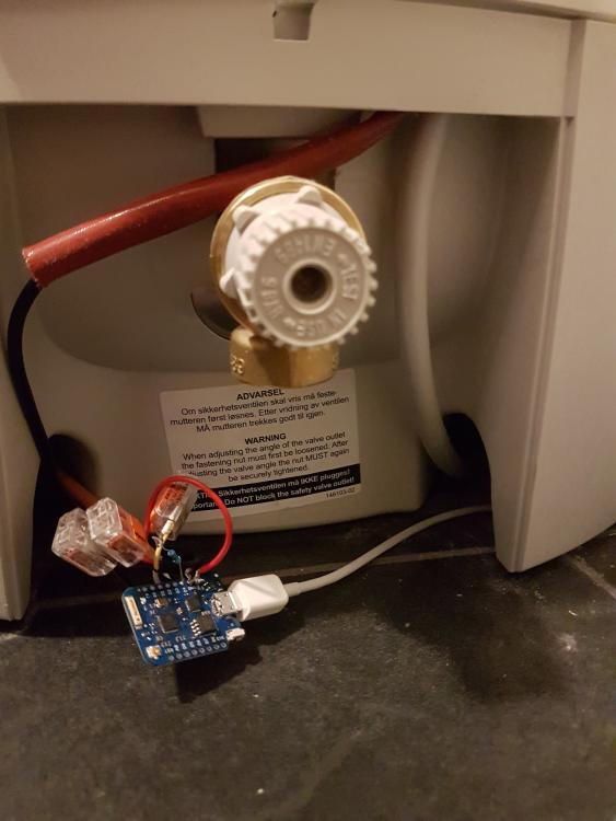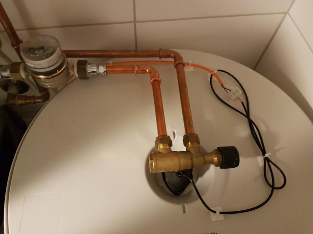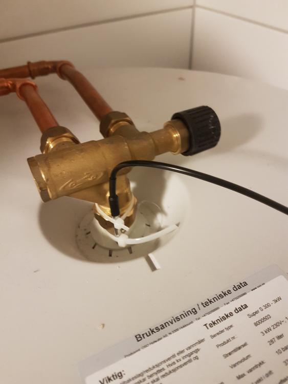 Nå som strømprisene variere såpass mye kan det være fornuftig å ha god kontroll på store strømkilder og spes vvb. Har kjørt lenge strømmåling og vannforbruk av varmtvann, og nå har jeg også satt opp temperaturmåling på dette som neste steg. Her er en beskrivelse om hvordan jeg har gjort det. Har en OSO 300 liter vvb En temperaturmåler av DS18B20 er plassert bak cellegummien der hvor strømtilkoblingen er, kabelen til temperaturmåleren ser man så vidt på bildet med rød isolasjonskappe som kommer inn ved siden av strømkabelen nederst til høyre. Andre temperaturmåleren er plassert på inn-/uttaket på toppen. Det er her kaldt vann kommer inn og varmt ut, så spent å følge med på denne over en liten tid... men siste døgnet har den vært stabil på mellom 55 og 58 grader, uansett om vi har brukt mye varmtvann (dusja) eller ingenting (om natta) Fester kablene og litt cellegummi rundt temperaturmåleren for å få litt mindre påvirkning av romtemperatur, blir itillegg et lokk med isolasjon på toppen av vvb. Her ser man også vannmåleren med SWM301 z-wave interface. Kobler temperaturmålerne til en Wemos med ESP Easy, som man får gjemt bak lokket til Sikkerhetsventil. Strømmen måles med en Carlo Gavazzi EM111 plassert i sikringskap som har modbus interface Og etter litt skjermbilde mekking Neste steg er å få en NC kontaktor til å styre når vvb får mulighet til å skru seg på. Tenker jeg lager noe logikk slik at den ikke skrur seg på når det er høy strømpris, men f.eks er temperaturen på utløpet kanskje rundt 40 grader, så kan den får skru seg på. Komfort går foran av og til Kommer tilbake med noe grafer om noen dager.