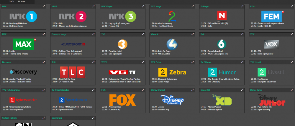Ser den, er nok en terskel for mange, men her i huset har det funket uten problemer med de fast-boende (barnepassere/besteforeldre er ikke så fan av løsningen). Man må legge opp til en lett løsning for å styre TV/dekoder. Og bare kopiere en fjernkontroll knapp for knapp, og styre det via telefonen vil jeg si ikke har noe for seg. Har lagt inn alle kanalene og TV program og så kan bare klikke på TV-logoen for å bytte kanal (og eventuelt skru på TVen om den ikke er på) På tablett På mobilen