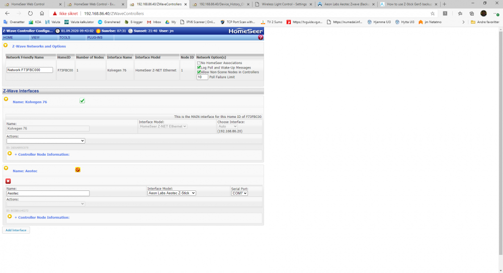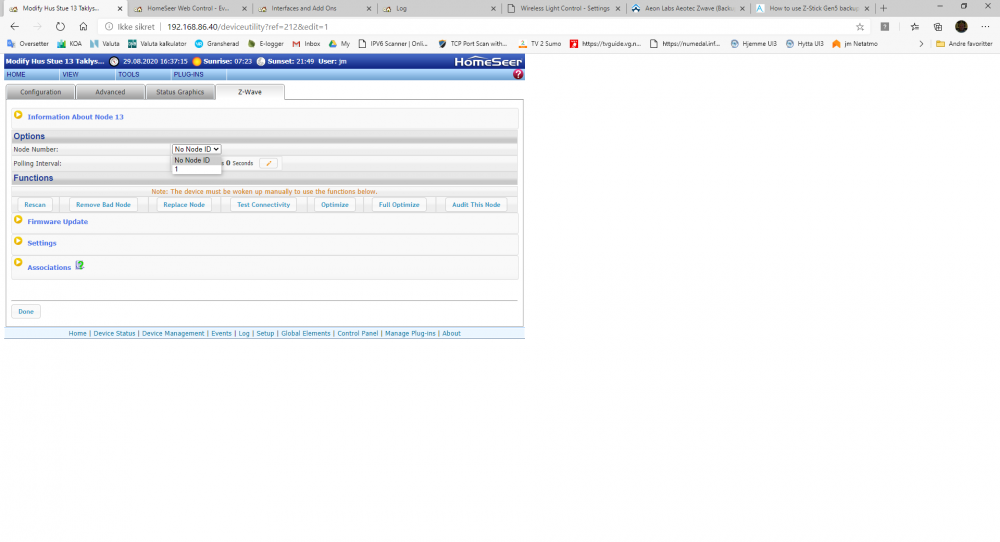 Jeg skulle da vise han hvor enkelt det var med backup/restore med Z-net, og da skjedde akkurat det samme. Han hadde da lagt inn enhetene med samme Z-net.